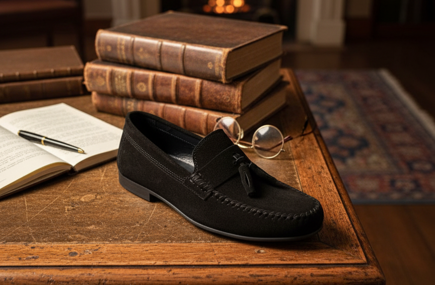 Mocassin à Pampilles “Dandy” – Daim Noir Profond